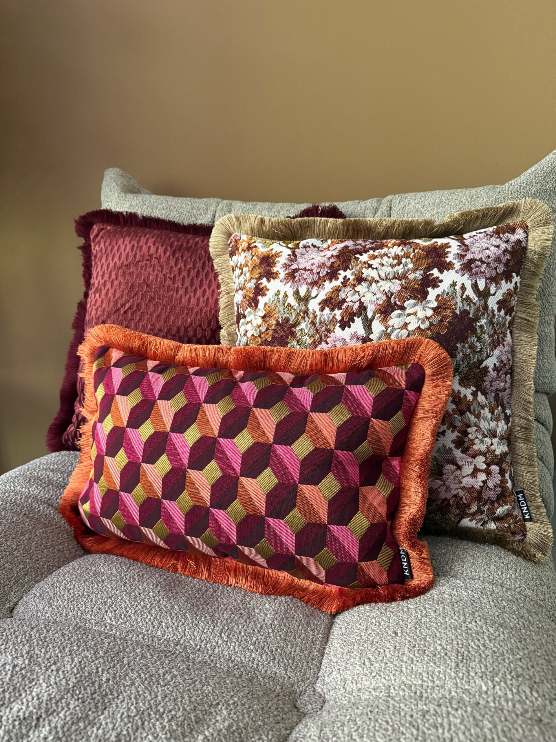 Dit kussen met de naam Automne is een onderdeel van de Maison Terre collectie.